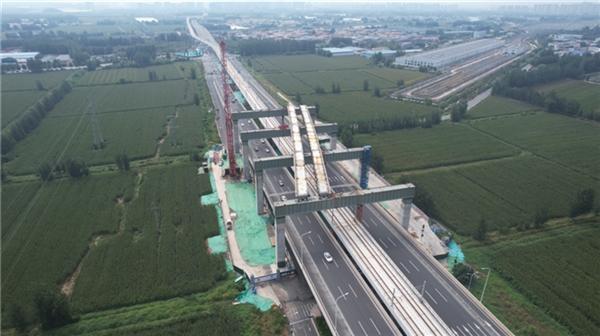 中建八局凤凰黄河大桥南延工程超大跨度钢混组合梁吊装完成