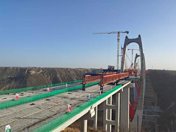 中交一航局G244线庆阳过境段公路张铁沟特大桥箱梁架设全部完成