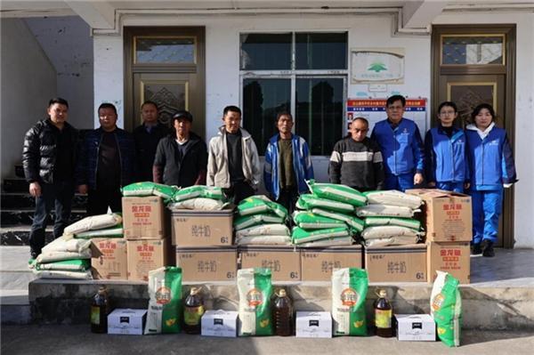 11月27日,中交路建贵都扩容工程联合贵定县沿山镇和平村村委,在当地开展“情暖布依”困难群众帮扶送温暖活动,为30户布依族困难家庭送去米、粮油等生活必需品。