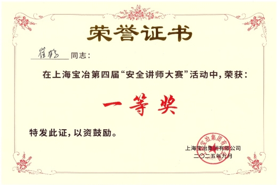 上海宝冶长春分公司荣获上海宝冶第四届 安全讲师大赛一等奖