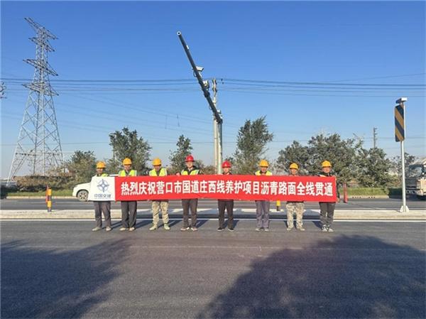 中交路建辽宁省营口市国道庄西线养护项目沥青面层全线贯通
