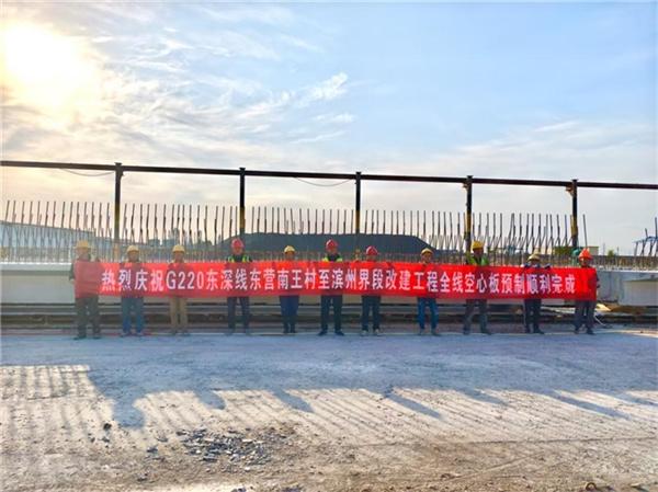 近期,G220东深线东营改建项目空心板预制全部结束,首件空心板架设完成,标志着项目进入年末冲刺阶段。项目起于南王村东北,止于G220东深线利津滨城界,穿越东营区及利津县..